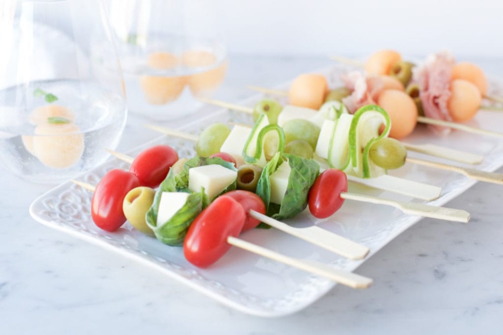 Il suffit d’investir une dizaine de minutes pour mettre les ingrédients sur la brochette au lieu de mettre les plats directement sur la table, et ça fait toute la différence! Tu peux utiliser les ingrédients de ton choix et varier selon ce que tu as dans le frigo et ton inspiration du moment. Voici les ingrédients que j’ai utilisés :