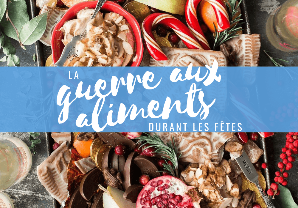 Durant le temps des fêtes, j’entends souvent une expression qui me rend triste : on parle de « survivre » au temps des fêtes, comme si on allait à la guerre aux aliments. Comme si notre ennemi était la tarte au sucre et que notre arme était un mince craquelin multigrains. Chaque année, je me demande pourquoi il y a tant d’appréhension envers le temps des fêtes. Pourquoi tant de culpabilité? C’est possible de profiter des fêtes, sans se priver, et se sentir bien en plus!