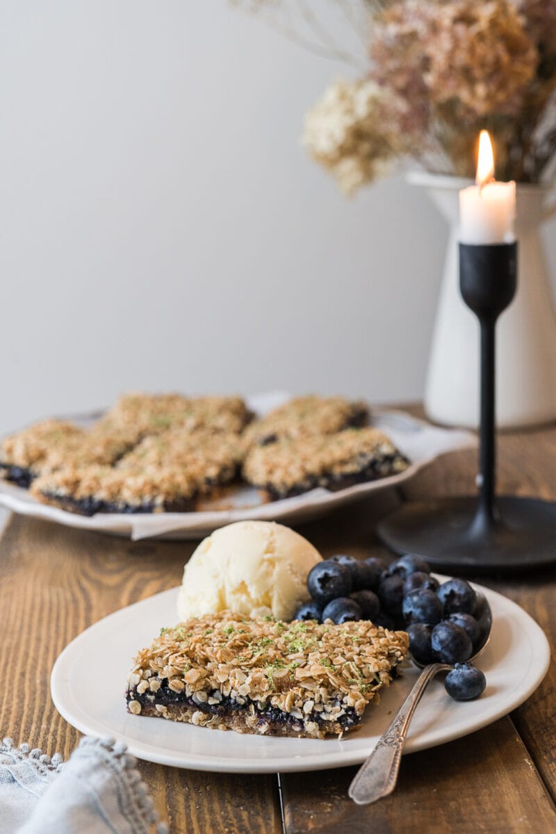 À la fois croustillant et fondant, ce crumble aux bleuets est parfait en dessert pour finir le repas sur une note sucrée. J’aime tellement cette recette ! Je la mange aussi en collation.