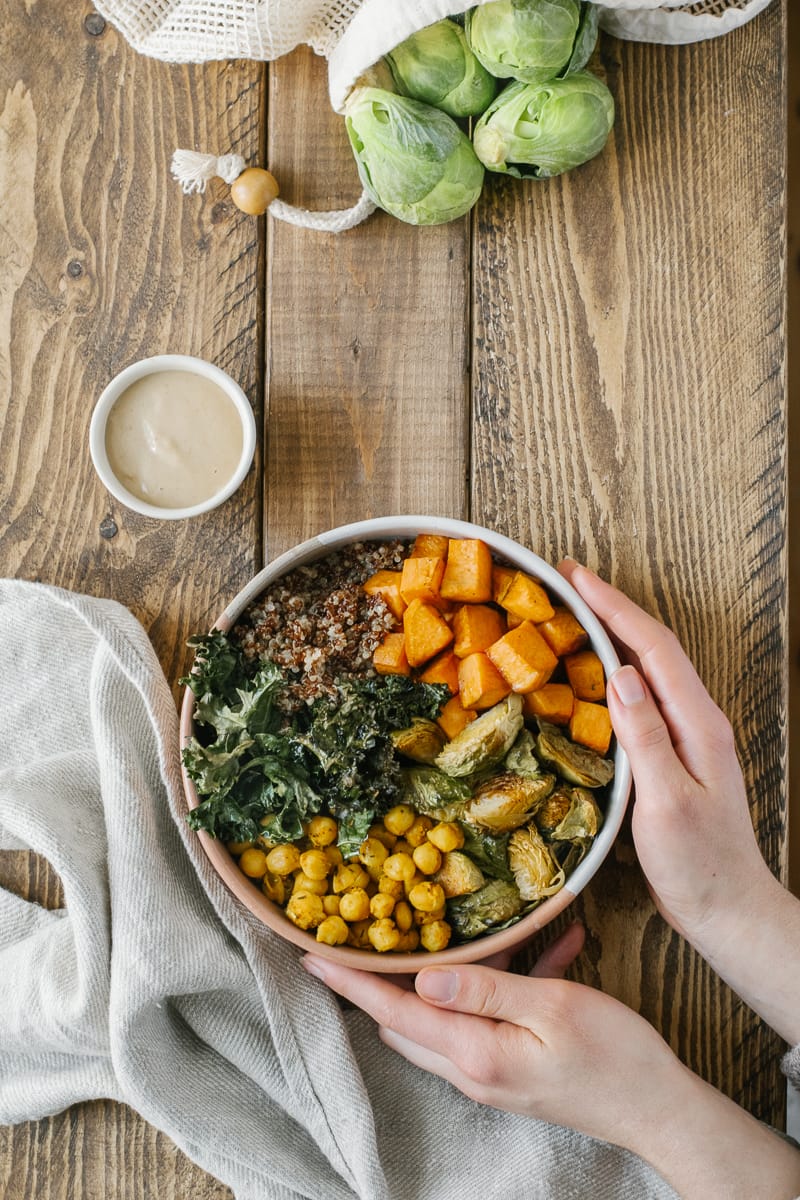 Buddha Bowl végé aux patates douces, quinoa et sauce tahini à l’érable