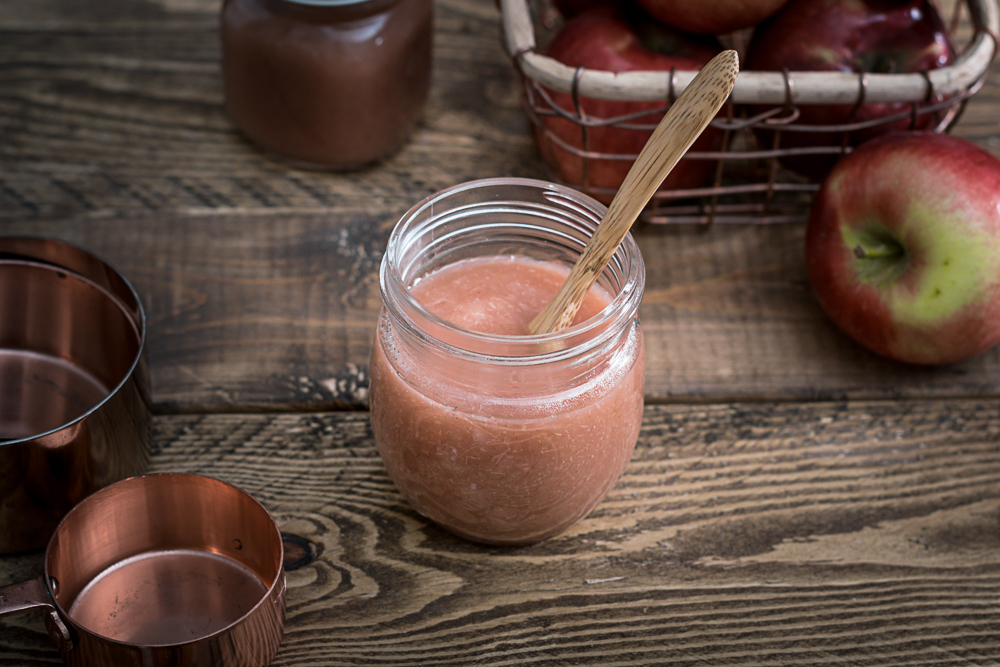 - À l'aide d'un mélangeur, réduire les pommes en purée lisse.
