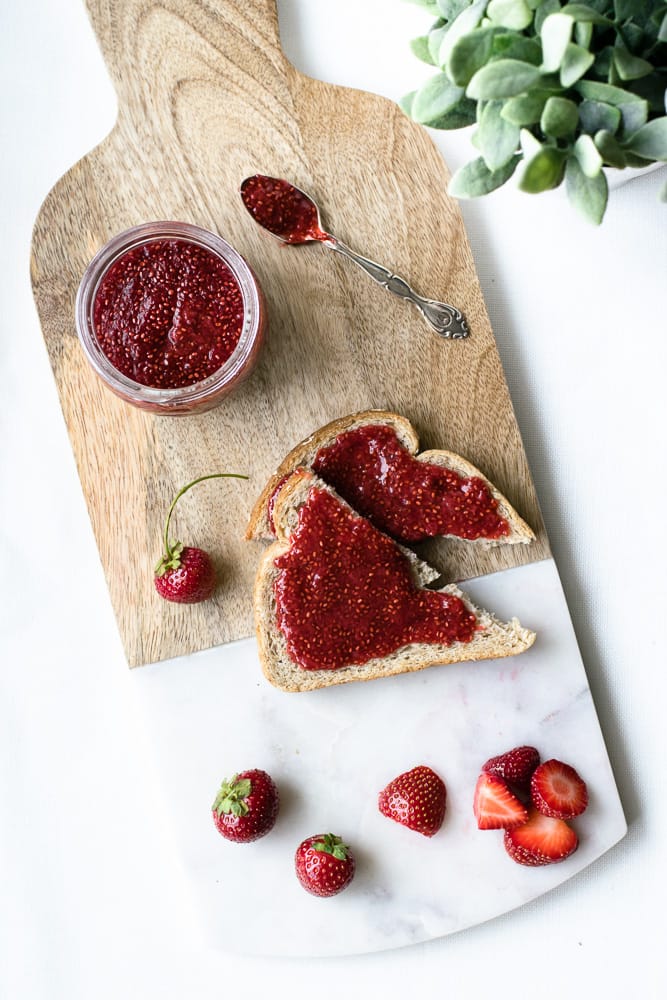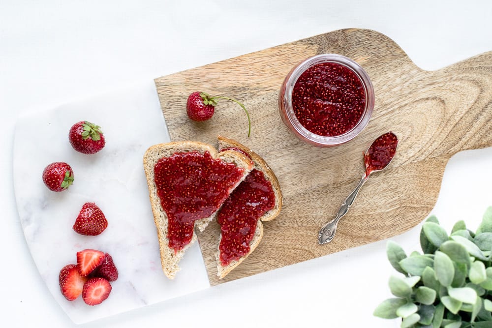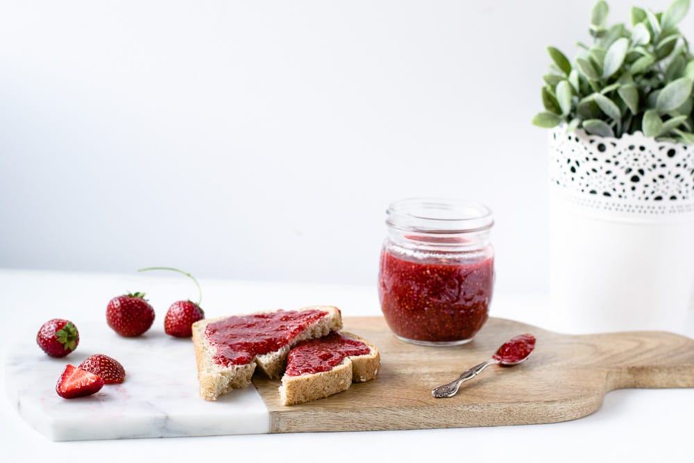 Les fraises sont vraiment délicieuses à ce temps-ci de l’année, alors j’avais envie de partager ma recette de confiture aux graines de chia. Cette confiture est devenue un incontournable à avoir dans mon frigo. C’est aussi une recette parfaite pour utiliser les fraises qui commencent à ramollir. Parce que jeter des fraises, c’est un crime !