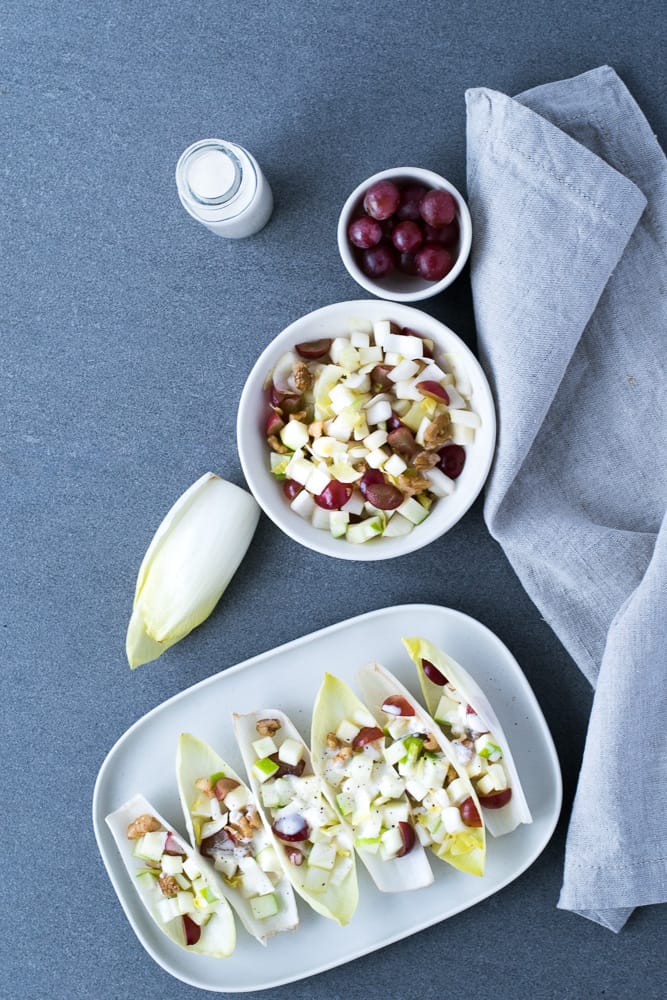 Impressionne tes invités avec cette idée toute simple, fraiche, santé et prête en moins de 15 minutes. Les endives peuvent aussi être servies en accompagnement des grillades. Profites-en pendant qu’elles sont de saison!