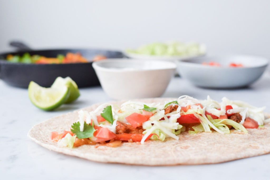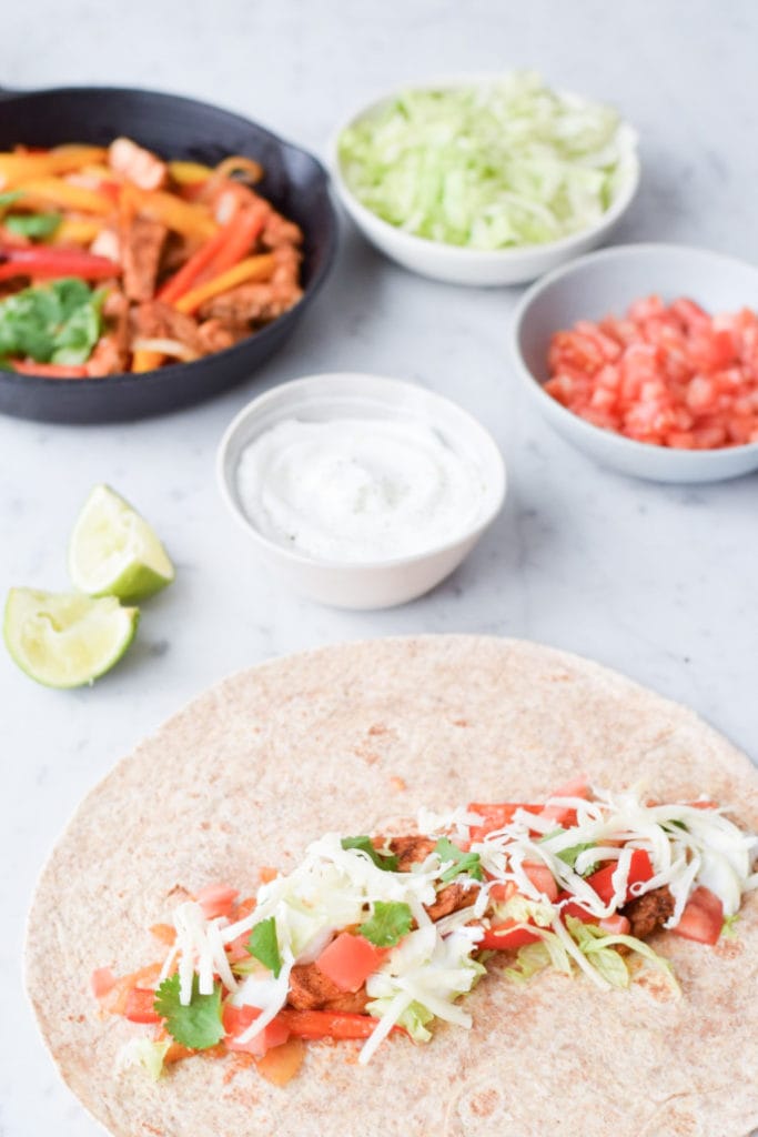 J’adore faire des fajitas lorsque je reçois, car c’est ultra rapide à faire et chacun peut les assembler à son goût. Santé, les fajitas? Certainement ! Il suffit de ne pas tout frire dans l’huile et de remplacer la crème sûre et le fromage riche en matières grasses par des substituts plus légers.