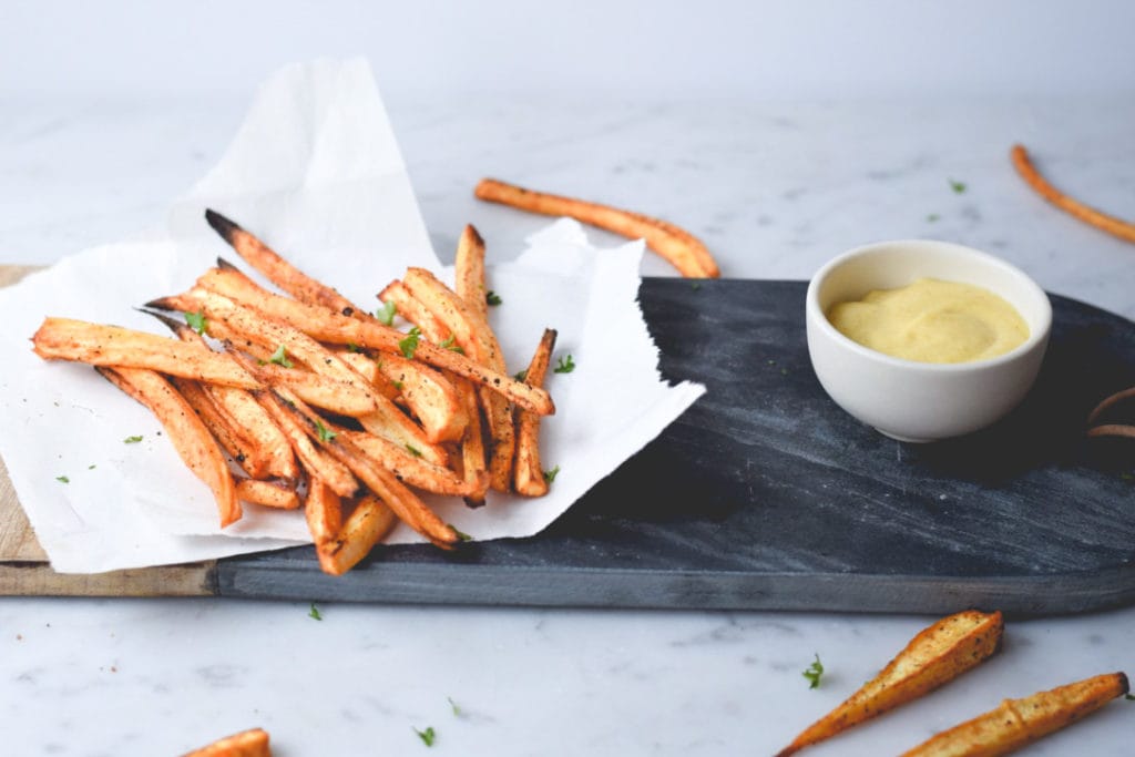 Frites de panais et mayonnaise au cari