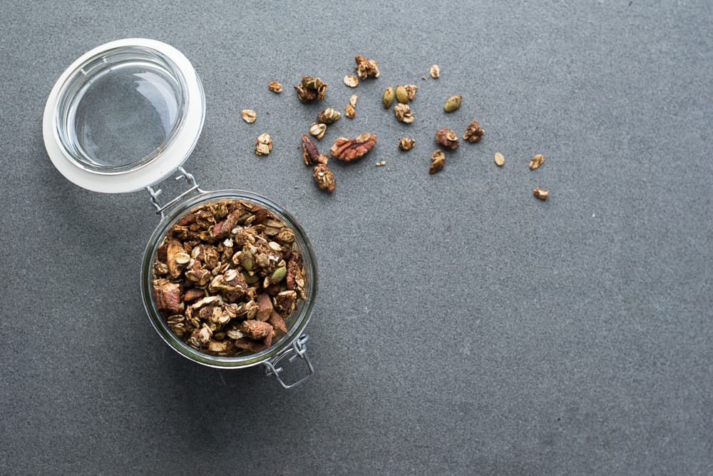 Le granola se conserve plusieurs semaines dans un plat hermétique à l’abri de l’humidité.