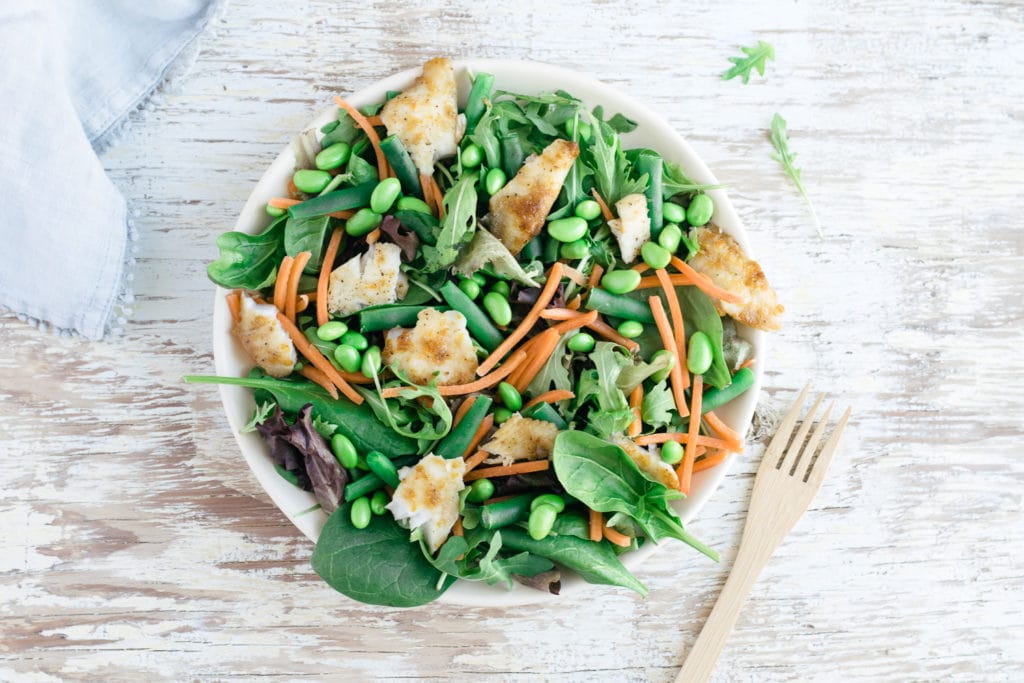 Rien de plus facile que faire une salade : pas de cuisson et peu d’étapes de préparation. On n’a qu’a mélanger les légumes que nous avons au frigo et agrémenter d’une vinaigrette. Pour faire différent, on peut varier le type de laitue (mesclun, boston, roquette, bébé épinards…), y ajouter des légumes râpés, des légumes grillés, des fruits… J’adore les salades, car les possibilités sont infinies!