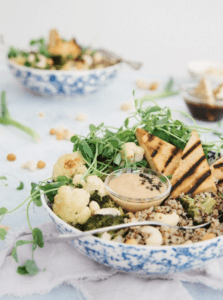 Bol de bouddha aux légumes grillés & au bacon de tofu