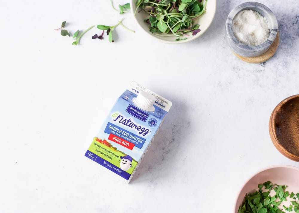 Pour réaliser mon omelette, j’aime bien avoir sous la main des blancs d’oeufs liquides. Ils sont super versatiles et permettent de créer un repas rassasiant en moins de 10 minutes.