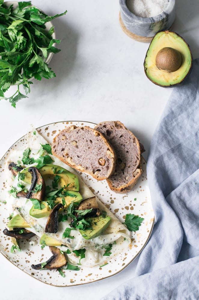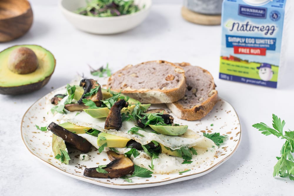 Omelette aux blancs d'oeufs avocat, shitake & fromage de chèvre