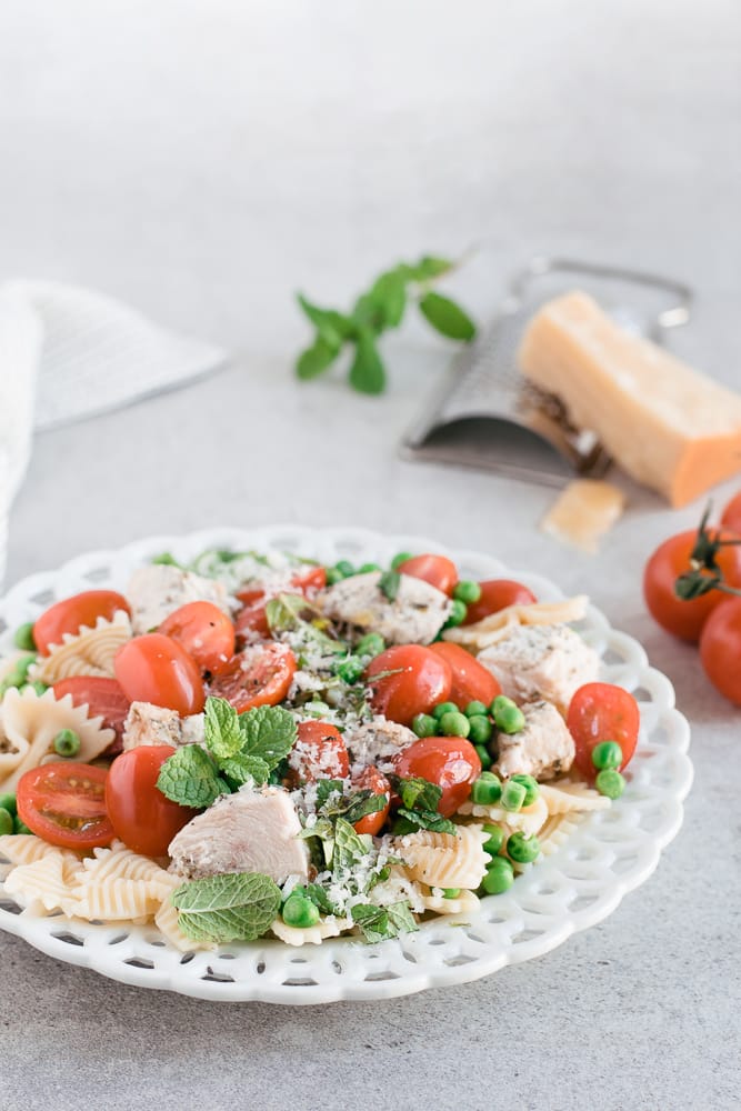 Cette salade de boucles au poulet est une de mes recettes favorites lorsque vient le temps de préparer un repas complet avec pas grand chose. Pour dépanner, j’essaie de toujours garder du poulet cuit et des légumes surgelés au congélateur. Il reste seulement à cuire les pâtes et le tour est joué!