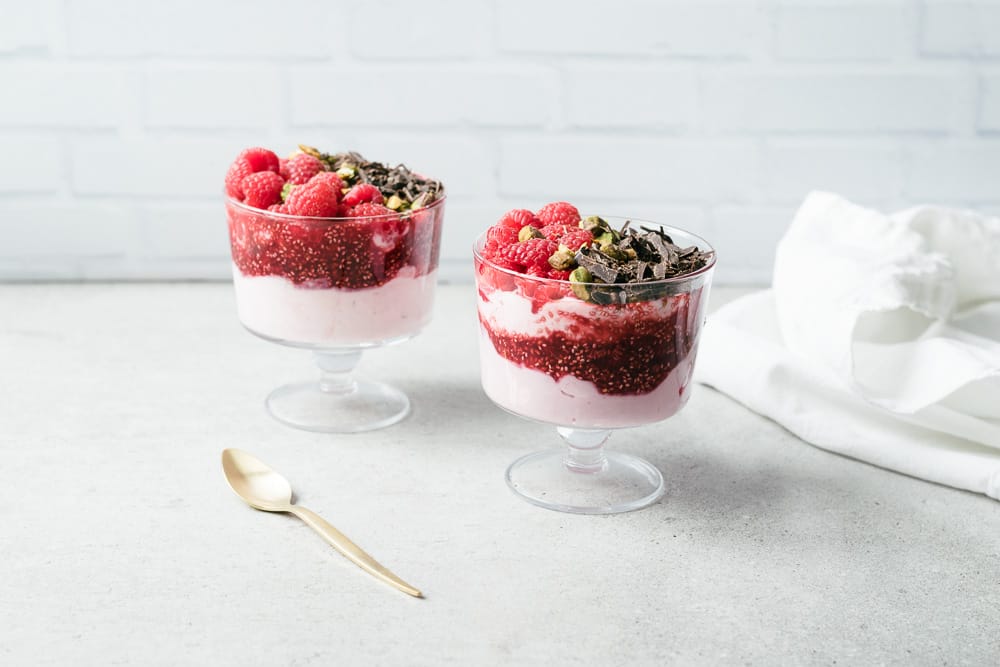 - 300 ml (1 ¼ tasse) de yogourt grec aux framboises