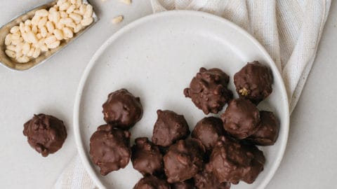 Mélanger. Former 40 petites boules de 1 c. à thé. Placer dans une assiette et congeler 1 heure (ou toute la nuit).