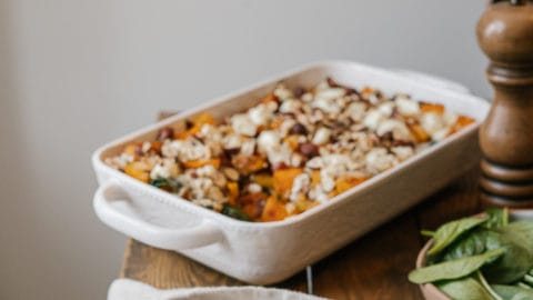 Placer au four et cuire 20 min, jusqu’à ce que le fromage soit légèrement fondu et doré sur le dessus.