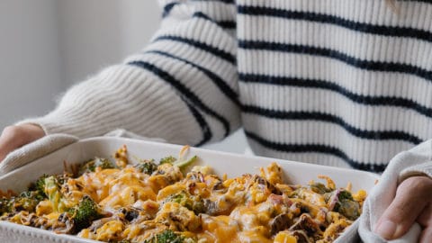 Gratin de tofu, courge butternut et brocolis au cheddar fort