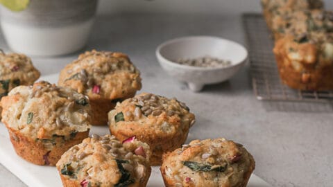 Verser la préparation dans le moule. Parsemer les muffins de graines de tournesol. Cuire au four pendant 20 minutes ou jusqu’à ce qu’un cure-dent inséré au centre d’un muffin en ressorte propre.