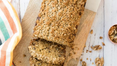 Étendre le crumble préparé à l’étape 2 sur le pain et placer au four. Cuire 50 minutes.