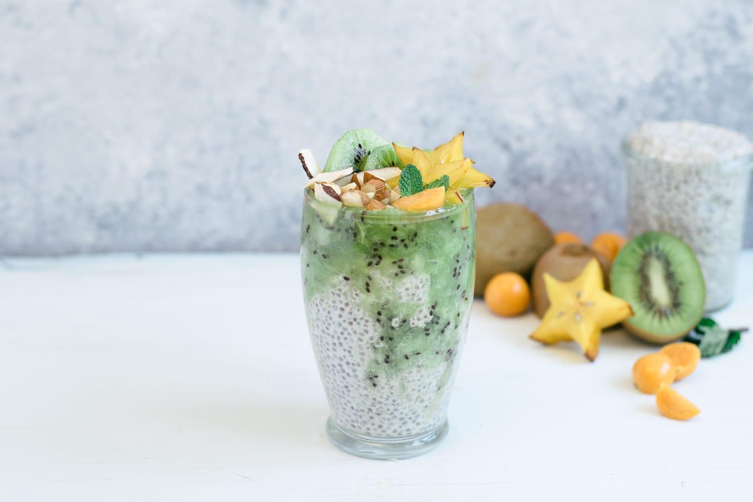 Verser la purée de kiwis sur les 2 pouding de chia.
