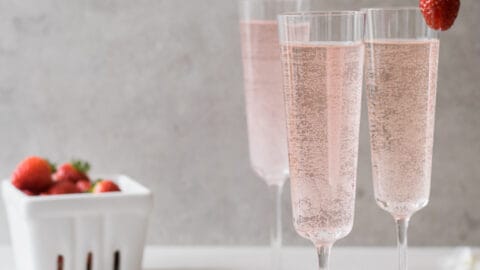 Dans un verre, mélanger 125 ml (½ tasse) d’eau pétillante et 60 ml (¼ de tasse) de concentré de queues de fraises.